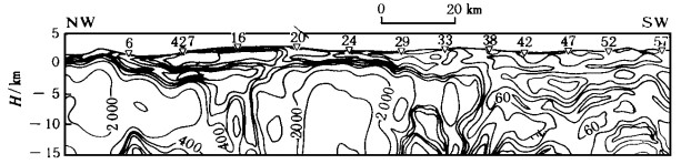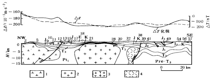 摘要: 对C盆地某测线进行地质、地球物理综合解释, 确定了第三系、白垩系、侏罗系以及目的层上三叠统的分布, 并识别出多处火成岩体及局部构造, 指出该剖面以一逆断层分成南北两段, 南北存在着巨大的差异; 北部上三叠统厚度较薄、埋藏较浅、变形较弱; 而南部上三叠统厚度较厚、埋藏较深、变形较强.总之, 通过地质、地球物理综合解释获得了较全面的认识, 取得了明显的地质效果Abstract: The comprehensive geological and geophysical interpretation of one measuring line in Basin C is applied to the determination of the distribution pattern of the Tertiary, the Cretaceous, the Jurassic and the Upper Triassic, a target stratum, and to the identification of several masses of igneous rocks, and several local structures. This section is classified as southern and northern parts along a reverse fault. A great difference arises between the southern and the northern parts of the section. The Upper Triassic in the northern part is thinner in thickness, shallower in burial depth, and weaker in deformation than that in the southern part. In conclusion, the deeper understanding of the comprehensive geological and geophysical interpretation may help us to obtain a better geological result.