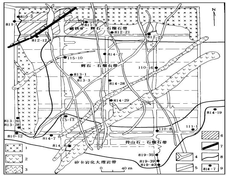 Table 1. Electron microprobe analysis of garnet in magnetite-pyroxene-garnet zone of the Shizhuyuan deposits