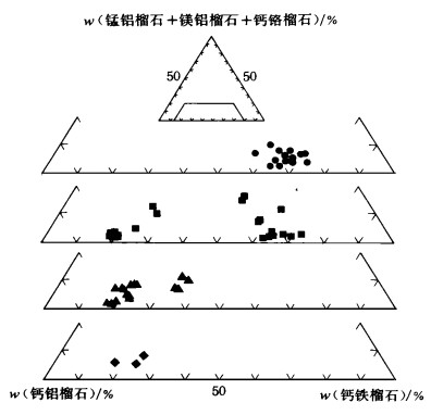 表 4 柿竹园矽卡岩化大理岩带的石榴石电子探针分析