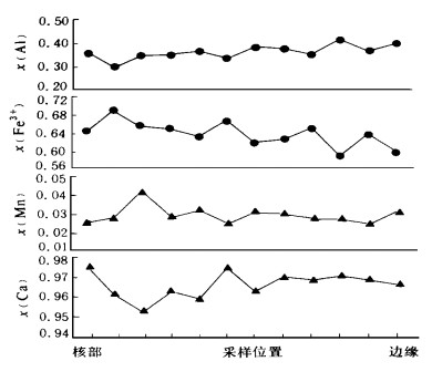 表 1 柿竹园矿床磁铁矿-辉石-石榴石带的石榴石电子探针分析