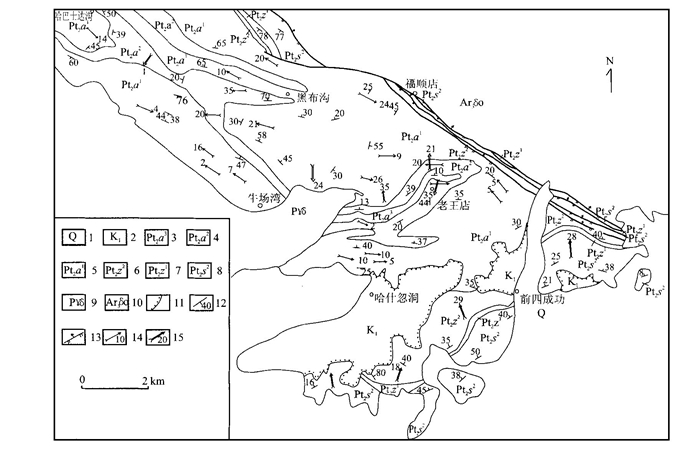 Fig. 4. Structural outline map of Zhaertaishan Group, Guyang, Inner Mongolia