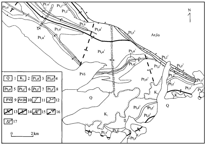 图 4 内蒙古固阳渣尔泰山群构造纲要图