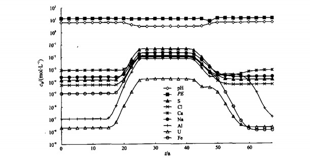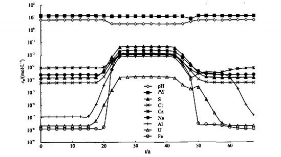 摘要: 地下水中铀的反应运移模拟对地下水保护和铀矿区的恢复都很重要, 因为铀是一种化学毒害性很高的放射性元素.在地下水及水与固体之间都应考虑对流、弥散、稀释、吸附等化学相互作用.介绍了德国德累斯顿市附近的Koenigstein矿区淋滤条件的可行性研究结果.由于反应运移模拟需占用大量的CPU时间, 所有的运行在一天内完成, 但用简单的混合法进行了稀释.对于这种研究, PHREEQC 2.2证明是一个功能很强的工具.与PHREEQC相对应的数据库WATEQ4F涉及到48种元素、400多种物质、300多种矿物.根据铀和镭的特性, 对其作了一定的修改, 以使它更具相容性和可靠性.Abstract: Modeling migration of uranium in groundwater is important for both groundwater protection and rehabilitation strategies of uranium mining sites due to the fact that uranium is both a radioactive element and an element with high chemical toxicity. Advection, dispersion, dilution, sorption and chemical interactions both in water and between water and solids have to be taken into account. This paper presents results which have been done in the context of the feasibility study for the in situ leaching mine Koenigstein near Dresden(Germany). Since reactive transport modeling is consuming a lot of CPU time all runs were performed 1 d but taken into account dilution by means of a simple mixing approach. PHREEQC version 2.2 proved to be a powerful tool for this kind of investigations. The database WATEQ4F which comes with PHREEQC containing 48 elements, more than 400 species and more than 300 minerals, was modified with respect to uranium and radium making it more consistent and reliable.