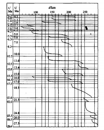 Fig.  2.  Variation of sea-coastal onlap in Pearl River Mouth basin