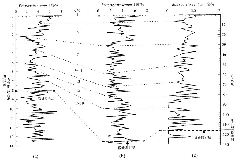 Abstract: This paper presents the discussion of the stratigraphic and palaeo oceanographic significance of Botryocyrtis scutum in the three cylindrical samples that have occurred in the South China Sea since the Pleistocene. The relative abundances of the radiolarian Botryocyrtis scutum in the three cylindrical samples in the South China Sea since the Pleistocene are correlated with oxygen isotopic records, indicating that the relative abundance of the Botryocyrtis scutumv corresponds well to the oxygen isotopic records since the MIS 18. The abundance of B. scutum fluctuated during the glacial and interglacial periods, with its high abundance during the interglacial period and the low one during the glacial period. Just like the oxygen isotopic records, the abundance changes of B. scutum indicate the glacial and interglacial cycle and at the same time can be considered as a tool for the stratigraphic classification and correlation. -