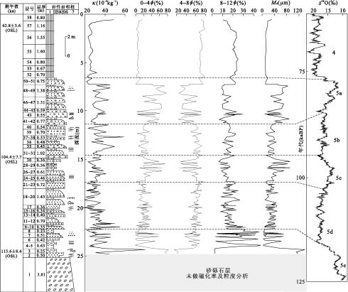Fig. 4. Comparison diagram of magnetic susceptibility and granularity for the third terrace of the Yellow River in Xunhua basin