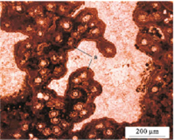 摘要: 地质历史上的生物礁主要为海相生物礁.海相生物礁中生物种类丰富, 而且常常出现在正常的海洋环境中.陆相湖泊生物礁则极为少见, 而且造礁生物种类单调, 常常出现在特有的湖泊环境.山东东营凹陷古近纪湖相藻礁主要由绿藻门的枝管藻形成礁体的骨架, 蓝细菌藻纹层起粘结作用.居礁生物种类十分单调, 但数量丰富, 主要包括广盐性的介形类、小型腹足类和龙介类.在湖相藻礁建造过程中, 早期碳酸盐成岩作用产生的纤维状方解石十分发育, 对加固枝管藻骨架起到了重要作用.同时, 大量早期碳酸盐胶结物的存在表明当时湖泊水体的碳酸盐饱和度较高.藻礁发育的古近纪在世界许多地方出现蒸发岩沉积, 反映藻礁总体是在气候比较干旱的时期形成的.枝管藻藻礁不但对古生态和气候具有重要的指示意义, 而且对油气储集层的研究勘探也有重要价值.Abstract: Most fossil reefs found so far are preserved in marine sediments with high biodiversity of reef-building organisms and recognized as implication for shallow normal marine environment. However, lacustrine reefs are relatively scarce and usually constructed by low biodiversity but high abundance of reef associated fossils, implying specialized water conditions. The frame of Paleogene lacustrine reefs in Dongying depression of Shandong Province were constructed mainly by Cladosiphonia and bound by Cyanobacteria. Reef-dwelling organisms are of great abundance though only a few species are involved, such as ostracodes, micro-gastropods and spirorbis, which belong to euryhaline organisms. Large amount of fibrous calcite cement was formed as the product of early diagenesis around the Cladosiphonia, reinforcing the solidity of reef structure. Early diagenesis cement widely formed in the reef structure suggests high saturation of lacustrine chemistry for carbonate precipitation. Paleogene is a special stage in geologic history, during which different types of evaporates were deposited all over the world. Paleogene Cladosiphonia-build reefs in Dongying depression should have been formed under arid climate conditions. Cladosiphonia-build reefs undoubtedly facilitates the understanding of the palaeoecology of ancient lacustrine and the condition of paleoclimate, and is of great importance to the study of petroleum reservoir as well.
