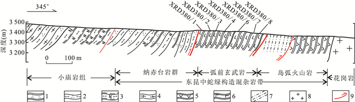摘要: 东昆中构造混杂岩带东段清泉沟玄武岩岩石源区及构造环境研究具有重要意义.通过对清泉沟玄武岩进行详细的地质、地球化学和构造环境研究,结果表明,该套玄武岩属于亚碱性拉斑玄武岩系列,球粒陨石标准化稀土元素配分图呈现轻稀土元素弱亏损-弱富集的特征,与正常大洋中脊玄武岩(NMORB)和西太平洋IBM弧前玄武岩(FAB)配分特征相似.岩石成因研究表明其源区具亏损地幔特征,且地幔熔融程度比NMORB源区熔融程度较高.构造环境研究表明该套玄武岩形成于大洋初始俯冲阶段的弧前环境.综合区域地质资料,认为东昆中古洋盆至少于中寒武世(510 Ma)之前开始向北俯冲,在俯冲初期形成了清泉沟弧前玄武岩,构成了俯冲带初始弧壳或不成熟洋内岛弧.Abstract: The research on magmatic source and tectonic setting of Qingquangou basalts in eastern section of East Kunlun is important for discussion of the tectonic evolution of East Kunlun ocean. This paper presents a systematic field geology, geochemistry, and tectonic setting research. The results show that the SiO2 contents of Qingquangou basalts range from 48.60% to 49.28%, MgO contents range from 7.72%-8.00%, TiO2 contents range from 1.07%-1.10% (average values, 1.09%), which are similar to the values of Izu-Bonin-Mariana forearc basalt, West Pacific. The basalts are classified into the tholeiitic basalt of subalkaline series based on the major elements feature. Qingquangou basalts are characterized by the ∑LREEs range from 22.64×10-6-33.31×10-6, ∑HREEs range from 13.13×10-6-18.37×10-6, ∑REEs range from 36.02×10-6-51.68×10-6, and (La/Yb)N range from 0.88-1.10. The chondrite normalized REE patterns show the widely enriched-depleted feature of LREE, resembling the feature of NMORB basalts and IBM forearc basalts, West Pacific. Moreover, the samples have low ratios of Ti/Y (312) and Ti/V (< 20), also indicative of the forearc basalt feature. The primitive mantle normalized trace element spider diagram shows enriched LILEs and undifferentiated HFSEs (e.g., Nb, Ta, Zr, Hf, etc.) features. Petrogenesis research shows that its source was derived from the depleted mantle, and further proves that its partial melting degree is higher than that of NMORB-type basalts. Additionally, the tectonic discrimination diagram suggests that the basalts formed in forearc tectonic setting. Combined with the previous data, it is concluded that East Kunlun ocean began to subduct northward at Middle Cambrian (ca.510 Ma), and that Qingquangou forearc basalts were generated meanwhile, forming the nascent island arc crust.