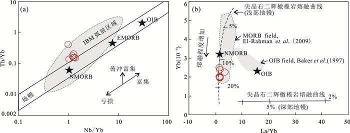 MORB,OIB数据据Baker et al.(1997); Pearce(2008); El-Rahman et al.(2009)