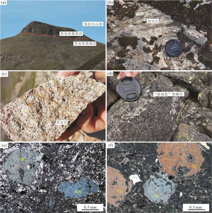 摘要: 中新世是拉萨地块增厚隆升的重要时期.本次报道了拉萨地块东部首次厘定的中新世地层,岩石类型包括流纹岩、英安岩、火山碎屑岩、黑曜岩和岩屑砂岩等,由3组喷发旋回构成.锆石U-Pb定年显示,该套地层形成于17.2~18.2 Ma.全岩地球化学和锆石Hf同位素分析显示,地层中的流纹岩具有钾质火山岩的地球化学特征,同时兼具A型花岗岩的亲缘性,为古老中下地壳部分熔融的产物.英安岩具有埃达克质岩的地球化学特征,为增厚新生下地壳部分熔融的产物.米拉山钾质流纹岩和埃达克质英安岩野外共生,丰富了拉萨地块中新世岩浆岩的研究内容,为青藏高原中新世岩石圈减薄/拆沉模型提供了新的证据.Abstract: Miocene is an important period for the thickening and uplifting of the Lhasa terrane. A set of Miocene strata were recently identified in the eastern Lhasa terrane. It can be divided into three eruption cycles, and consists of rhyolite, dacite, pyroclastic rock, obsidian and lithic sandstone. Zircon U-Pb dating shows that the strata formed during 17.2-18.2 Ma. Whole-rock major and trace element analysis and zircon Hf isotope analysis show that the rhyolite has the geochemical characteristics of potassic volcanic rocks, and is derived from the partial melting of a middle-lower crust. The dacite has the geochemical characteristics of adakite related with A-type granite, and is derived from the partial melting of a new thickened lower crust. The coexistence of the potassic and adakitic rocks enriches the research of the Miocene volcanic rocks, and provides new evidence for the Miocene lithospheric detachment model in the Tibetan Plateau.