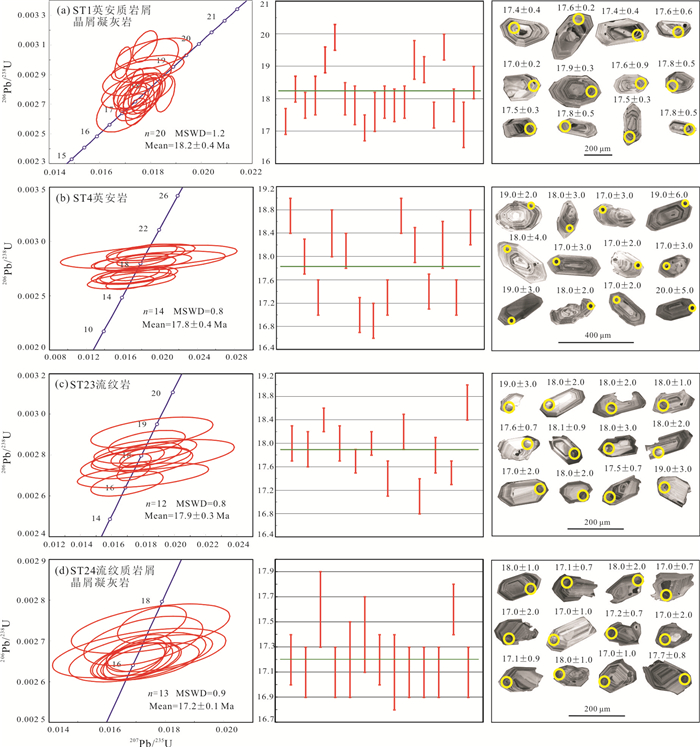 表 1 米拉山中新世火山岩LA-ICP-MS锆石U-Pb定年结果